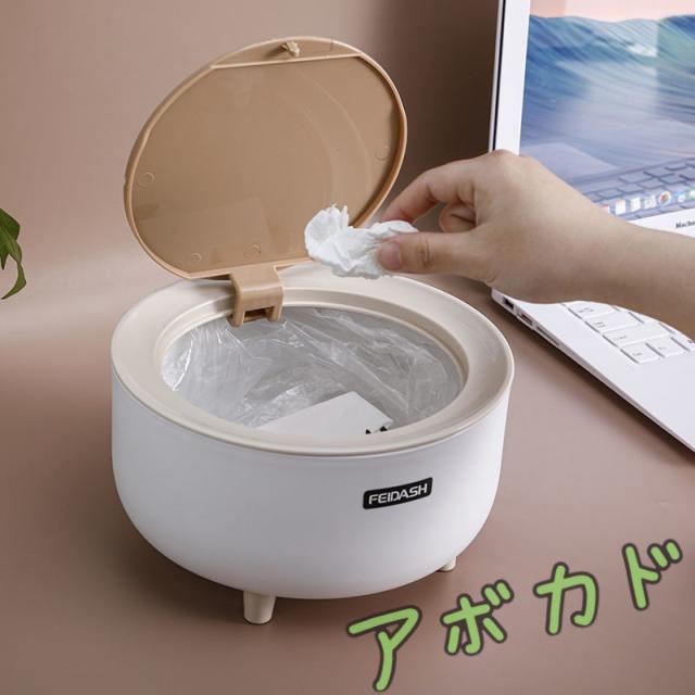 ■卓上ゴミ箱 ミニ ゴミ箱 おしゃれ フタ付き 無臭で密閉 北欧風 大きな間口 丸型 ワンタッチ開閉可能 レジ袋を隠す スタイリッシュ コンパ