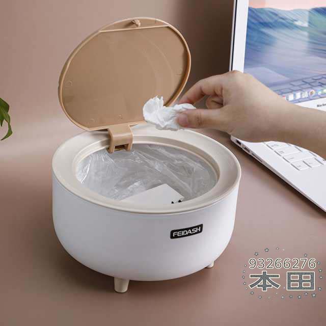 ■卓上ゴミ箱 ミニ ゴミ箱 おしゃれ フタ付き 無臭で密閉 北欧風 大きな間口 丸型 ワンタッチ開閉可能 レジ袋を隠す スタイリッシュ コンパ