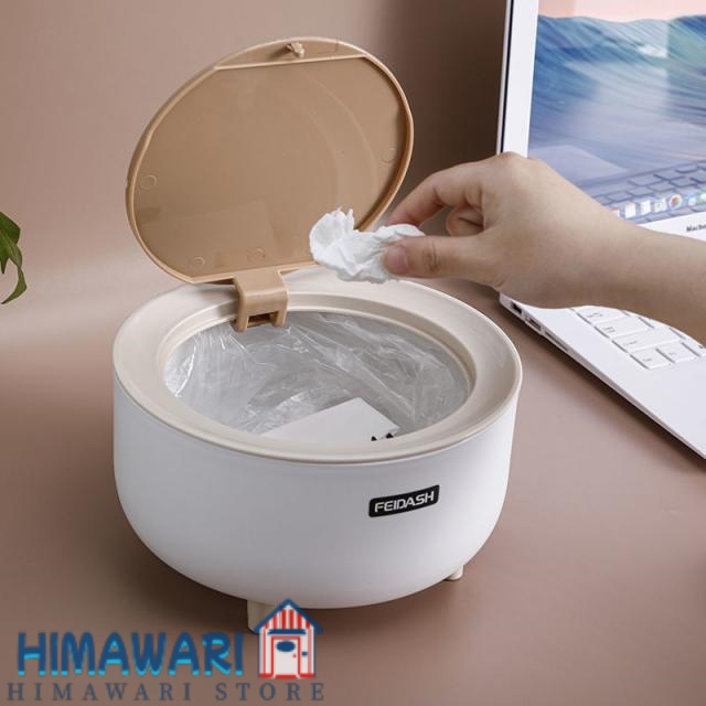 ■卓上ゴミ箱 ミニ ゴミ箱 おしゃれ フタ付き 無臭で密閉 北欧風 大きな間口 丸型 ワンタッチ開閉可能 レジ袋を隠す スタイリッシュ コンパ