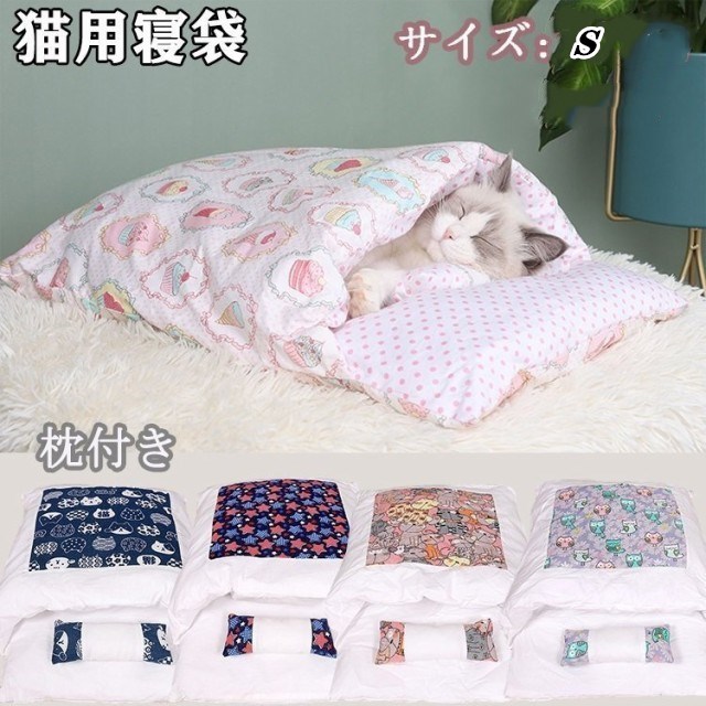 ペットベッド 猫用寝袋 お布団 和風 ぺットクッション ペットマット 取り外し 洗える かわいい ふわふわ 柔らかい 冬用 暖か 保温 小型犬 小動物用 枕付