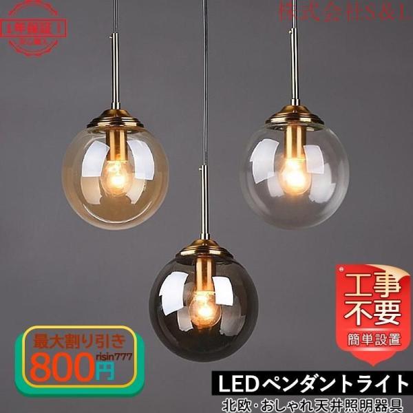 ■DIY ペンダントライト ガラス ボール型 丸い形 おしゃれ 北欧 LED対応 和風 ダイニング キッチン リビング 寝室 S&L 洋室和室 ダクトレ