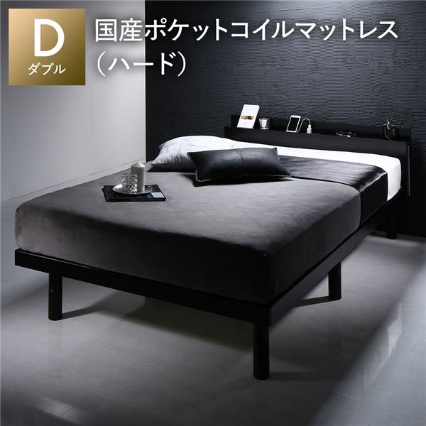 ■ダブルベッド 黒 ブラック ベッド 国産 日本製 国産ポケットコイルマットレス付 ハード 黒 ブラック 宮付き 高さ調整 すのこ ベット 送