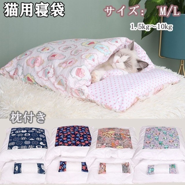 ペットベッド 猫用寝袋 お布団 和風 ぺットクッション ペットマット 取り外し 洗える かわいい ふわふわ 柔らかい 冬用 暖か 保温 小型犬 小動物用 枕付