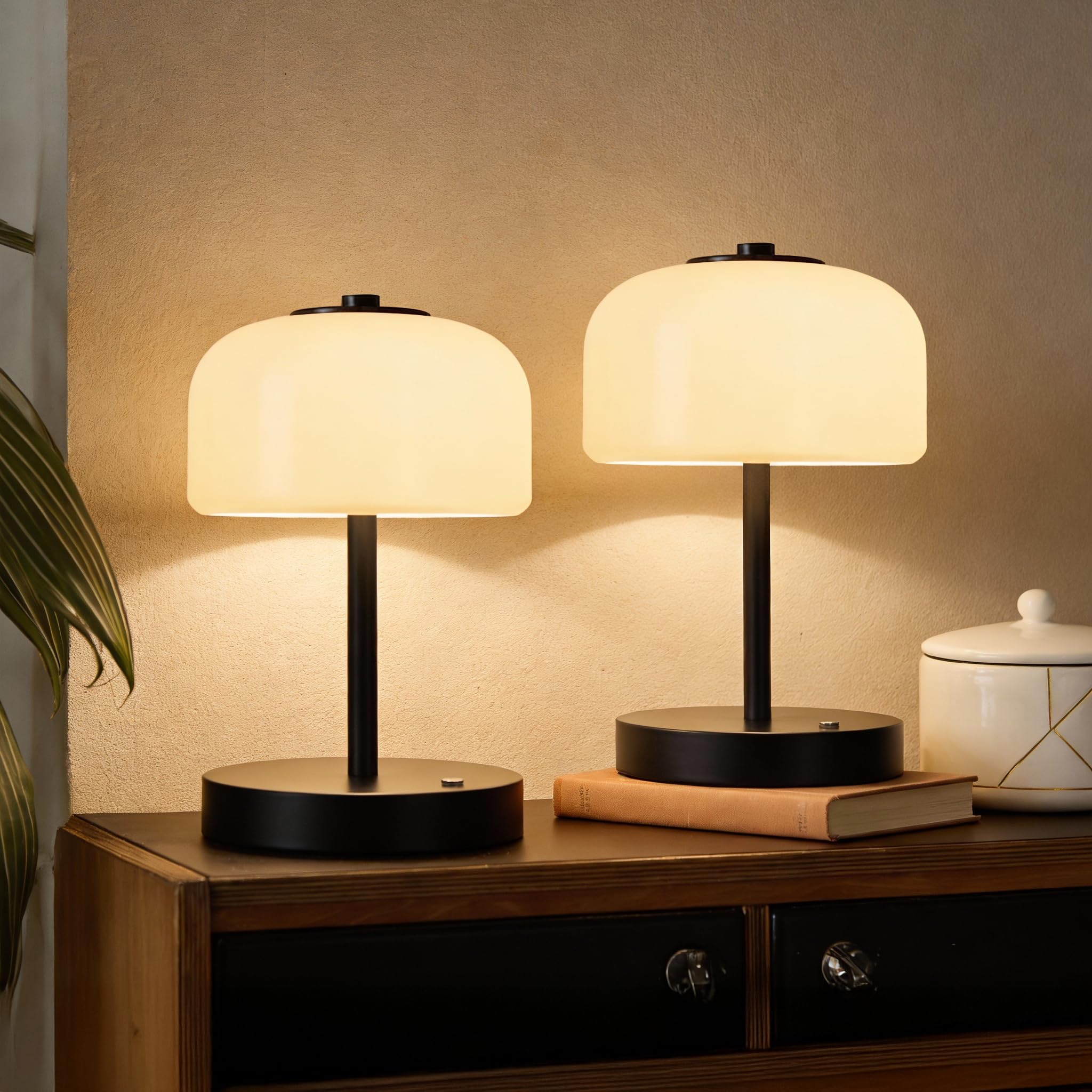 ■Gormena テーブルランプ ガラスシェード コードレス おしゃれ 和風 ベッドサイドランプ 間接照明 3色モード 無段階調光 USB充電式 タッチ