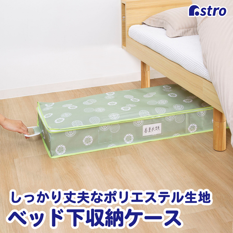 商品名:和モダン ベッド下収納カラー:グリーン柄:和モダン柄サイズ:約幅95×奥行き40×高さ13cm材質:ポリエステル(オックス 600D)内容:1個生産国:中国【特長】●両サイドに持ち手付きで持ち運びしやすく、内側の防虫剤を入られるポケットが便利。●ベッド下のスキマを活用してスッキリ収納。オフシーズンの衣類や毛布を収納してスペースを有効活用。●ダブルファスナーで3辺が開くので、たたんだ衣類の出し入れもラクラク。●外側には透明のネームホルダーが付いているので、メモを書いて入れておくと管理しやすい。【ご注意】●洗濯はできません。●強く引っ張ると破れるおそれがあります。●本来の用途以外でのご使用はお控えください。【ASTRO CO., LTD】1970年創業、不織布収納日用品メーカーとして「アストロ」のオリジナル商品を販売しています。生地の開発から製造、流通、品質管理を自社管理。収納用品をメインに多彩な日用品を企画販売してまいりました。アストロは暮らしを楽しく便利にさせる商品をこれからも創造し続けます。established in 1970