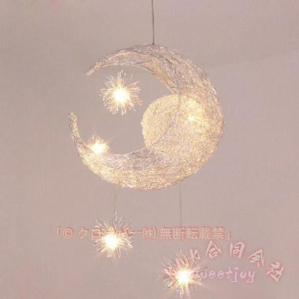 ■LEDペンダントライト 北欧 三日月 星 月ライト 籐編み KNK 和風 アルミ 天井照明器具 子供部屋 玄関 ダイニング リビング 食卓用 吊り下
