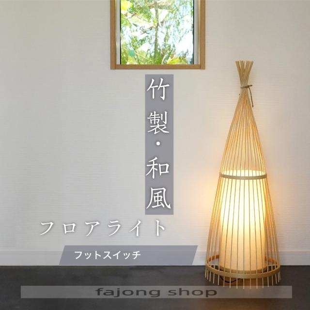 ■天然竹 和風 LED電球付き フロアライト スタンドライト 間接照明 フットスイッチ フロアランプ フロアスタンド 竹製 和モダン 和室 ナチ