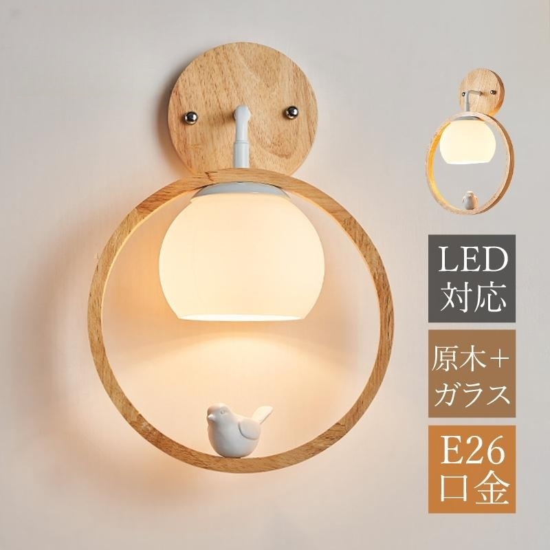 ブラケットライト 北欧 おしゃれ LED対応 かわいい 鳥付 木製 和風 壁掛け照明器具 階段 洗面所 玄関 リビング 壁付けライト 和室 子供部屋 ベッドサイドランプ