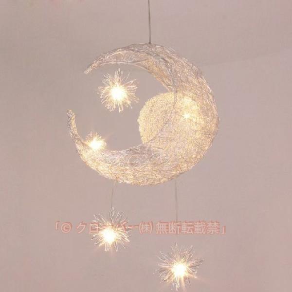 ■LED ペンダントライト 北欧 おしゃれ 三日月 星 月ライト アルミ 籐 編む 和風 天井照明器具 子供部屋 玄関 ダイニング リビング 食卓用