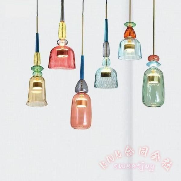 ■ペンダントライトシャンデリア風内蔵LEDガラス天井照明工事必要KNKカラフルキャンディデザインダイニング玄関カフェバー民宿欧米モダンイ