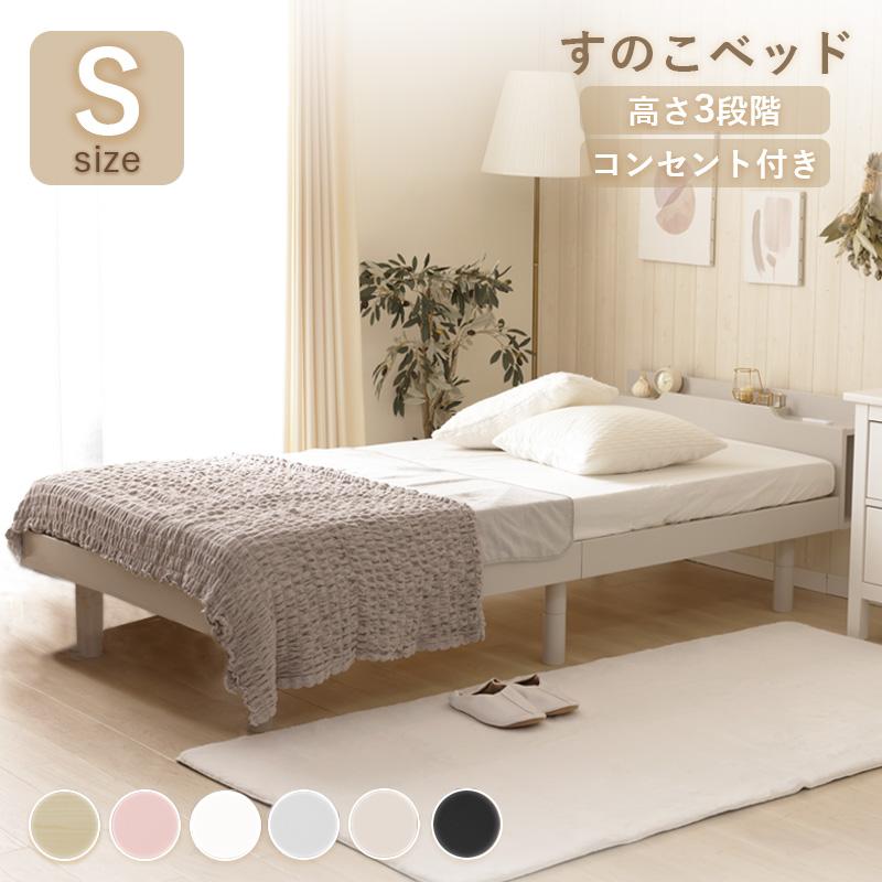 ■ベッド シングル すのこベッド ベッドフレーム シンプル 高さ調整可(3段階) コンセント付き 収納 パイン材 ベッドボード 宮付き 宮棚 シ