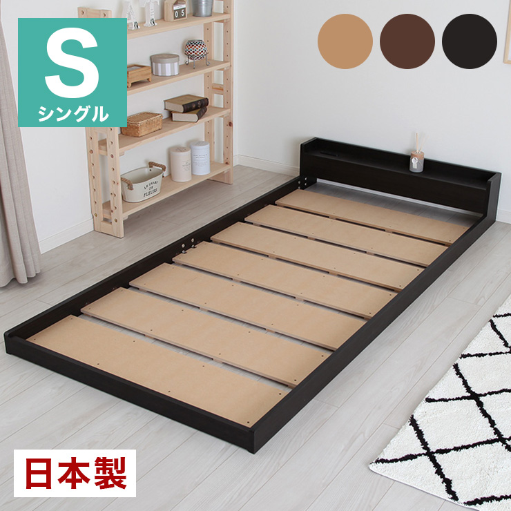 ■日本製 フロアベッド シングル フレームのみ ベッド ローベッド 低い宮付き 棚付き 宮棚 シンプル かわいい コンパクト シングル(代引不
