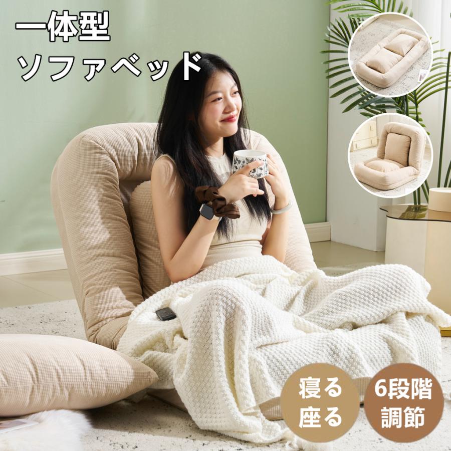 ■座椅子 ソファー 1人掛け ソファベッド 6段調整可能 3WAY 枕付き シンプル ベッド 折りたたみ 寝る 座る 可愛い コンパクトふわふわ フロ