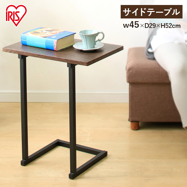 小物やよく使うものを置くのに便利なサイドテーブル。ソファやベッド、テーブルの傍らなど、様々なシーンでお使い頂けます。ソファの下に差し込めるコの字型のデザインで、手元に近くて使いやすいのも特徴です。落ち着いた色合いと温かみのある木目調で、インテリアに馴染みます。★お客様組立★(アイリスオーヤマ)
