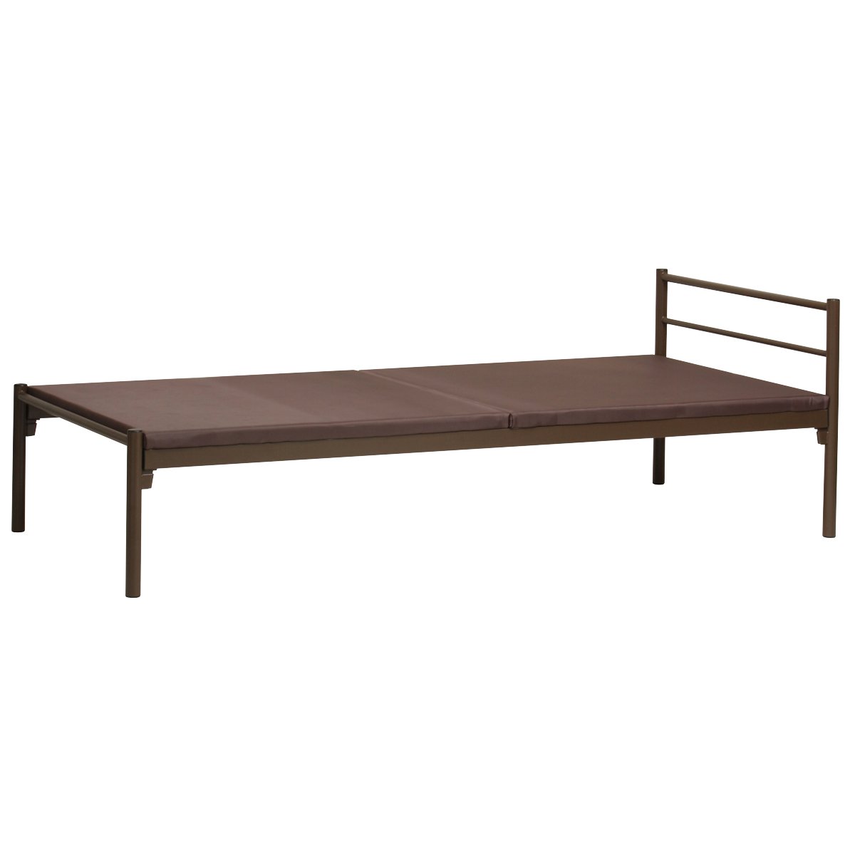 ■ベッド 工具不要 シングル スチール ブラウン ( 組立簡単 シンプル ベッドフレーム マット付き ベット下 床下 収納 パイプベッド )