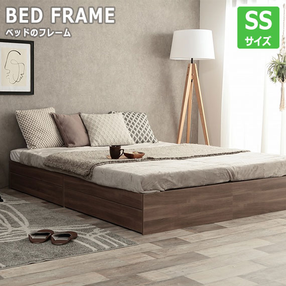 ■Glad ヘッドレス収納付きベッド SSサイズ (ベッドフレーム ベッド ロータイプ 引出し付き セミシングル シンプル コンパクト ブラウン 1