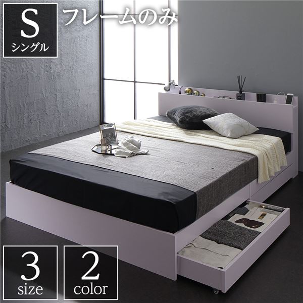 ■ベッド 収納付き 引き出し付き 木製 棚付き 宮付き コンセント付き シンプル モダン ホワイト シングル ベッドフレームのみ 【北海道・沖