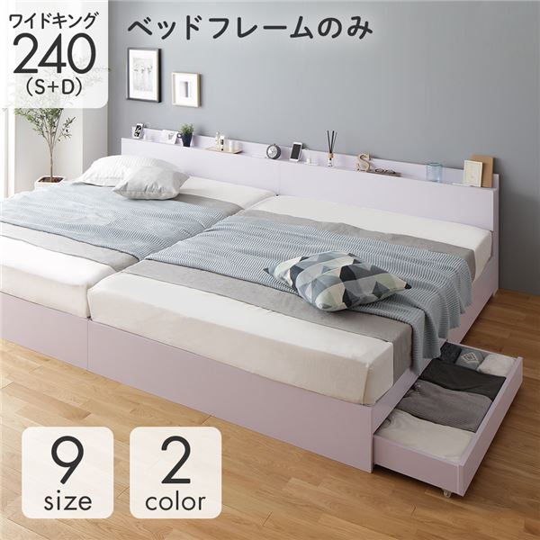 ■ベッド 収納付き 連結 引き出し付き キャスター付き 木製 棚付き 宮付き コンセント付き シンプル モダン ホワイト ワイドキング240(S+D