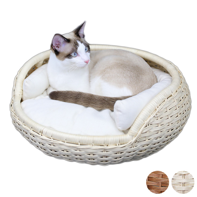 ■N4-style ラタンボウルベッド 猫用 ベッド ペットベッド ラタン ナチュラル ブラウン 上品 可愛い シンプル