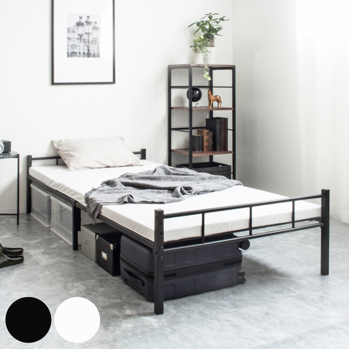 ■パイプベッド シングル スチール 頑丈 高さ2段階調整 ( ベッド 高さ調節 高耐荷重 メッシュ 通気性 収納 省スペース シンプル ブラック