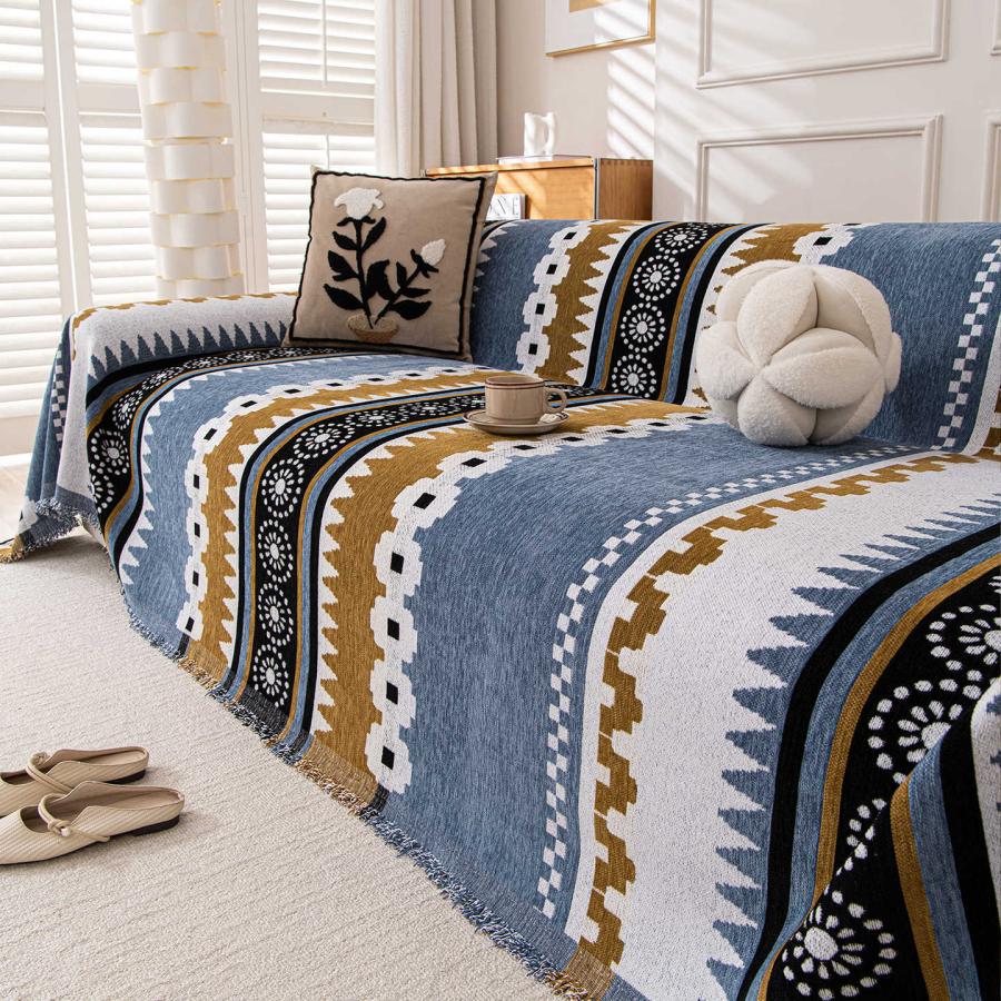 ■マルチカバー 3人掛け 2人掛け ナチュラル アジア ソファーカバー 掛けるだけ 縞模様 アジアン エスニック 一枚布 長方形 1人掛け ベッド