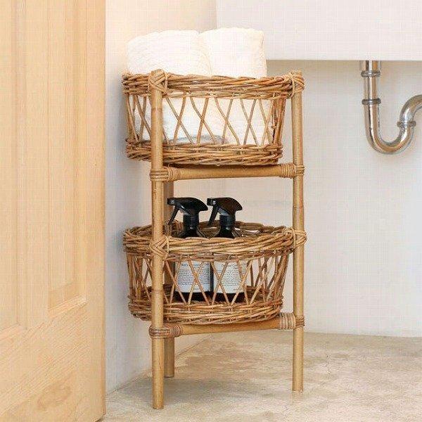 風合い豊かな皮つきラタンの2段バスケット 。 表皮をそのまま残して編んでおりますので、表皮の剥がれが生じる場合がございます。 黒い斑点やささくれ・つるの折れが生じる場合がございますのでご了承くださいませ。 ひとつひとつ編み子さんの手作り商品となりますので、若干の色や形の違いが有る場合がございますのでご了承下さい。 ◆製品サイズ 約 φ330×h620mm ◆素材・成分 皮付きラタン 【関連キーワード】 バスケット アンティーク家具 収納ラック オープンラック オープンシェルフ コンソール ガーデニング 天然籐 シェルフ 脱衣所 洗濯 ランドリー ガーデニング リゾート 洗面所 リビング オフィス 収納家具 収納棚 整理棚 ダイニング プレゼント 新築祝い 贈り物 ギフト 母の日 父の日 敬老の日 出産祝い 家具 サロン シンプル デザイン 作業 男性 女性 彼氏 彼女 一人暮らし ベッドサイド カフェ インテリア リゾート 韓国