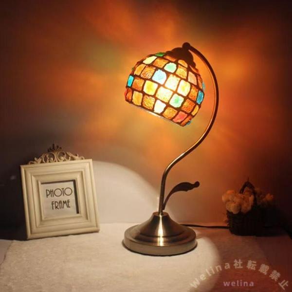 ■アンティークモザイクランプテーブルライト ステンドグラスベッドサイドランプシェード Welina デスクスタンドルームライトおしゃれ ヴィ