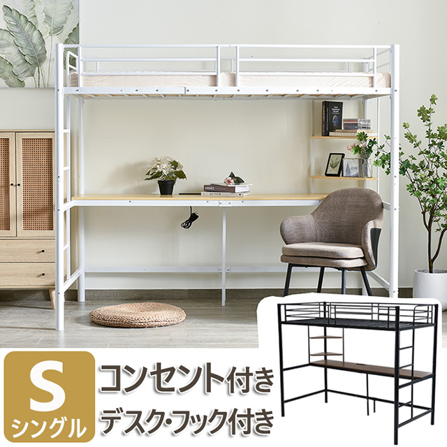 ロフトベッド パイプベッド 子供ベッド子供部屋二段ベッド 耐震 ベッド シングル コンセント付き 収納棚 デスク付き パイプベッド 金属 はしご付き 北欧風 新生活応援