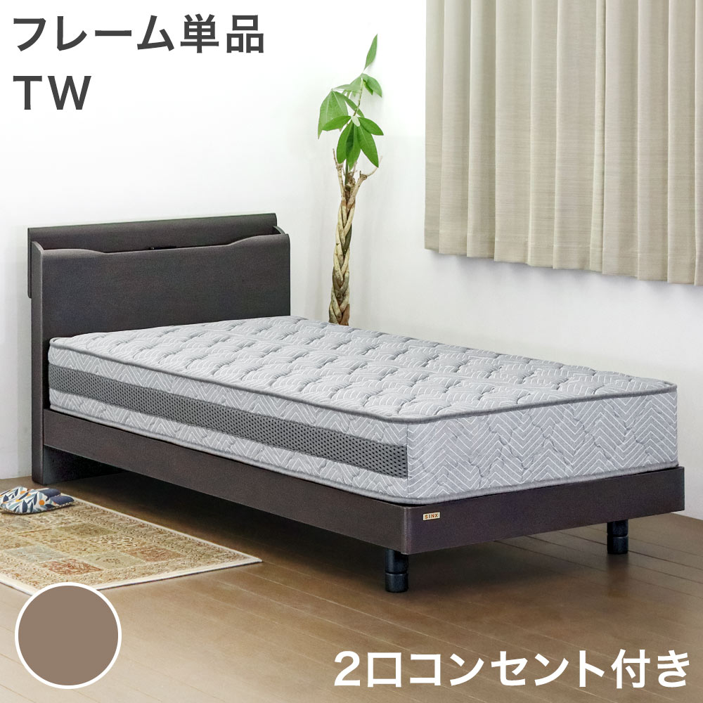 ■天然木 オーク 宮付き ベッド 2口コンセント付 ツイン ベッドフレーム ベットフレーム 単品 高さ3段階 シングルベッド ベット すのこ す