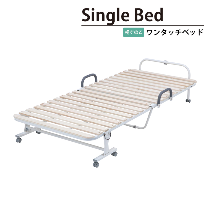通気性の良い桐タイプのすのこベッドです。キャスター付きで移動もラクに行えます。キーワード: ベッド シングル 折りたたみ すのこ 幅97.5 奥行208 高さ44.5 キャスター付き おしゃれ シンプル コンパクト 省スペース すのこベッド ワンタッチベッド 折りたたみベッド シングルベッド シングルサイズ 簡易 来客 ベッド 寝具 モダン おしゃれ かわいい 北欧 一人暮らし