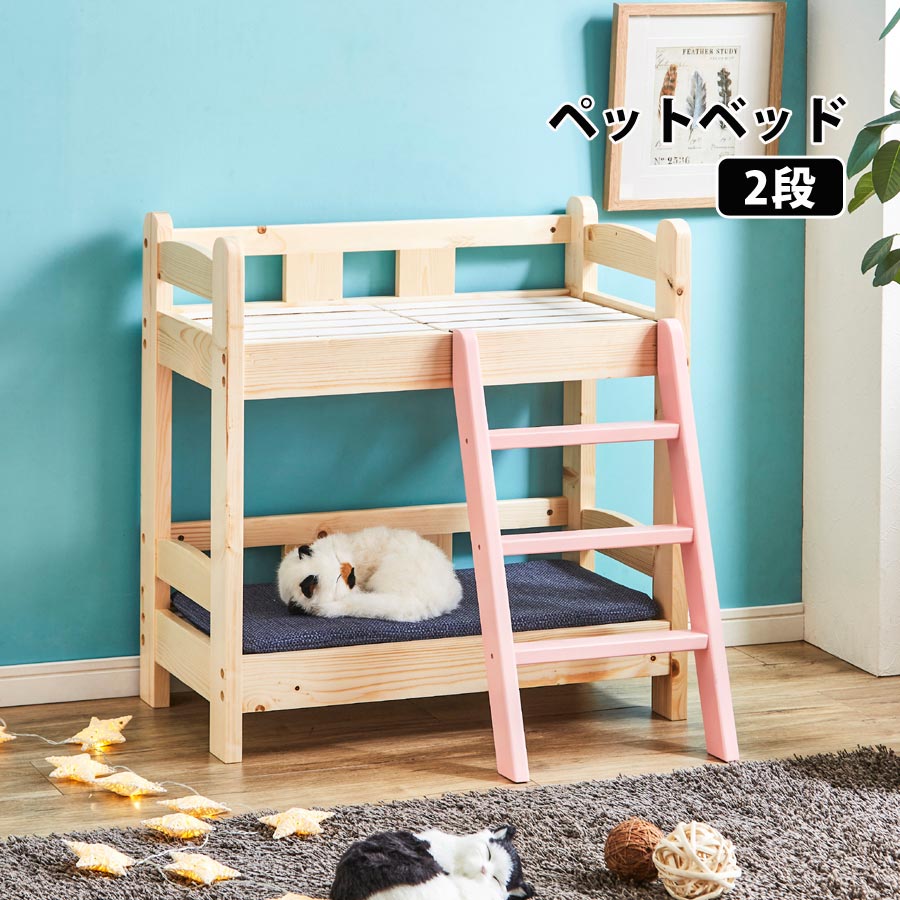 ■ペットベッド2段 ペット用品 ペット家具 ベッド 木製 すのこ PB-02