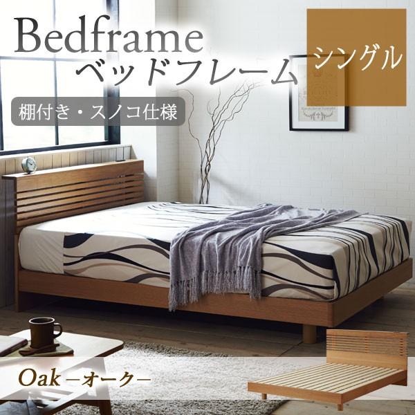 ■天然木 オーク材 シングル ベッド フレーム 宮付 コンセント付 ロマン ロボット掃除機対応