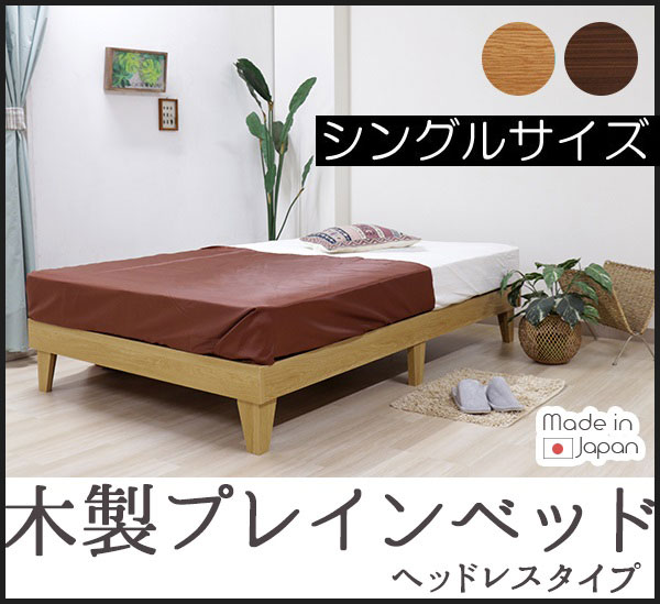 ■木製プレインベッド ヘッドレスタイプ シングル シングルベッド ポケットコイルマットレス付き ベッド ベッドフレーム レッグタイプ