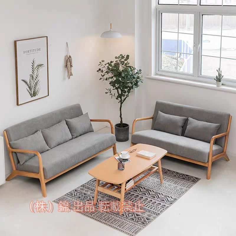 【製品仕様】サイズ: 本体:幅64×奥行59×高さ71cm 重量:15.5KG 座面:高39cm 座面:幅102×奥行46×厚さ14cm 耐荷重:約150kg 材質:座面/ファブリック フレーム/天然木ラバーウッド材 【ファブリック素材】優しい肌触りのファブリック素材は、通気性が優れて夏場でも蒸れにくい、年中快適に使用できます。欧米レトロデザインでお部屋の風合いに馴染み易いです。 【天然木フレーム】フレームは天然木を使用しており、暖かな風合いがあり、お部屋になじみやすい、より柔らかい雰囲気を創り上げます。 【肉厚クッション】座面クッションには厚み14cmのボリュームクッションを採用しております。硬すぎず、柔らかすぎない弾力で、体をしっかり支えます。 【注意事項】組み立てする際に、仮止めをお勧めします。 全ての穴の位置を合わせた後に、ボルトを均等に締めてください。最初からボルトを強めに固定すると歪みが発生し、他の部分のネジ穴が合わなくなることがありますので、予めご了承ください。
