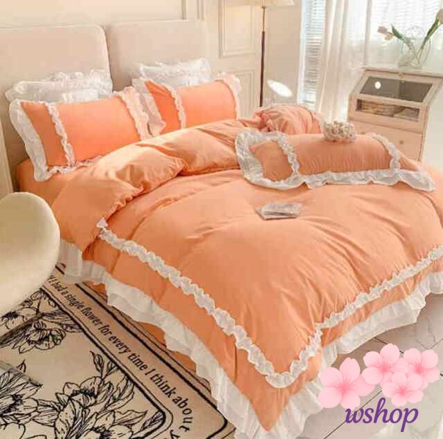 【wshop】布団カバー 4点セット 丸洗いOK ダブル 可愛い ベッド おしゃれ おしゃれ ベッドスカート 北欧 まくらカバー 布団カバーセット セット 姫系 ウォッシャブル シーツ フリル 掛け布団カバー セミダブル