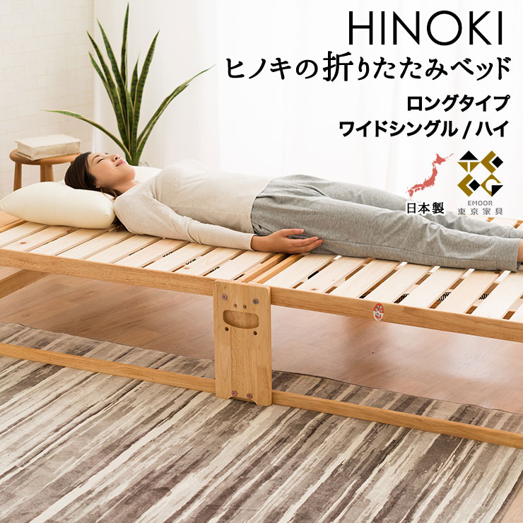 ■ヒノキの折りたたみベッド ワイドシングルサイズ ひのき 檜 桧 国産 日本製 天然木 ヒノキ無垢材 すのこ 北欧 シンプル 送料無料