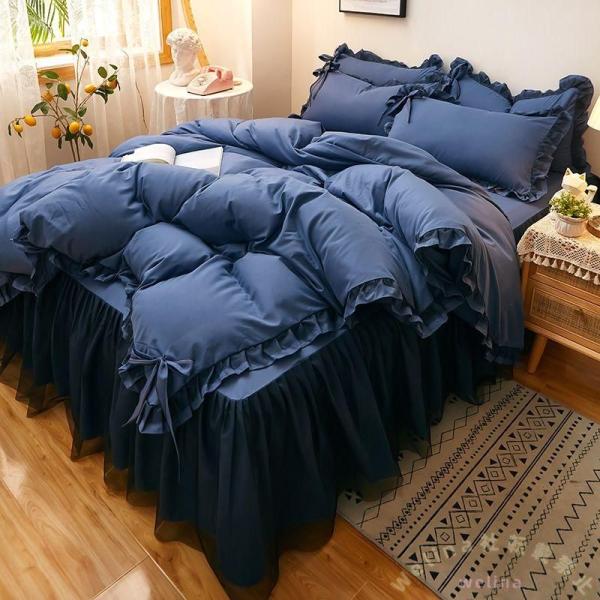 ■布団カバー ダブル 4点セット セット 北欧 姫系 フリル フリル付き 布団カバーセット シングル セミダブル ダブル 洋式 枕カバー ウォッ