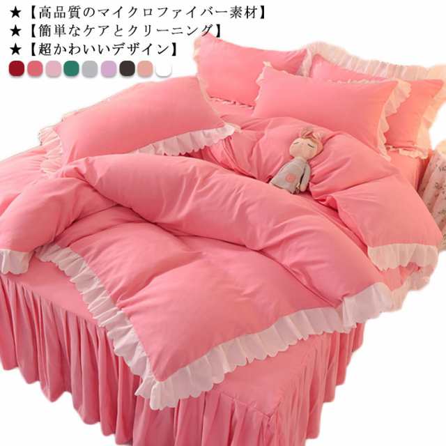 布団カバー ダブル 4点セット セット 北欧 姫系 フリル フリル付き 布団カバーセット シングル セミダブル ダブル 洋式 枕カバー ウォッシャブル ベッドスカート おしゃれ ベッド用 布団用 ベット 寝具カバー
