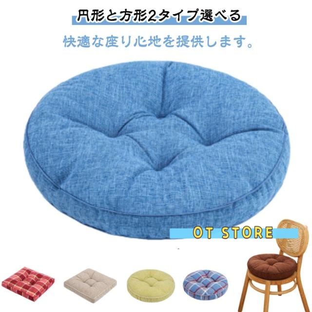 座布団 クッション 椅子用 42×42cm 北欧 フロアクッション 丸形 厚手 7cm おしゃれ 抱き枕 床 車 イス 座る ベッド かわいい ざぶとん 分厚い 在宅 テレワーク