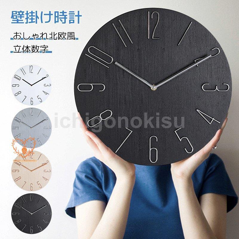 壁掛け時計 北欧 時計 壁掛け おしゃれ デジタル 静音 アナログ 連続秒針 木目調ダイヤル 3D立体数字 見やすい ウォールクロック ベッドルーム 部屋 客間