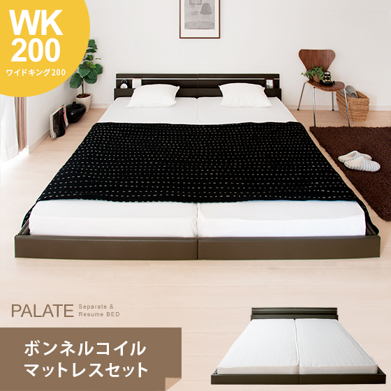 ■ベッド ローベッド フロアベッド ワイド キング 宮付 照明付 マットレス付き キングサイズ 日本製 すのこ 北欧 シンプル モダン ブラウン