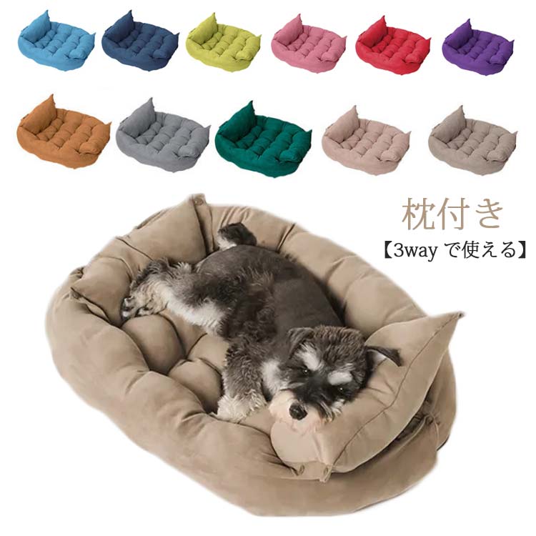 ■3way ペットベッド ベッド 犬 猫 角型 枕付き 夏 春 秋 冬 クッション 小型犬 猫用 犬ベッド 猫ベッド ペット クッション 犬小屋 北欧 お