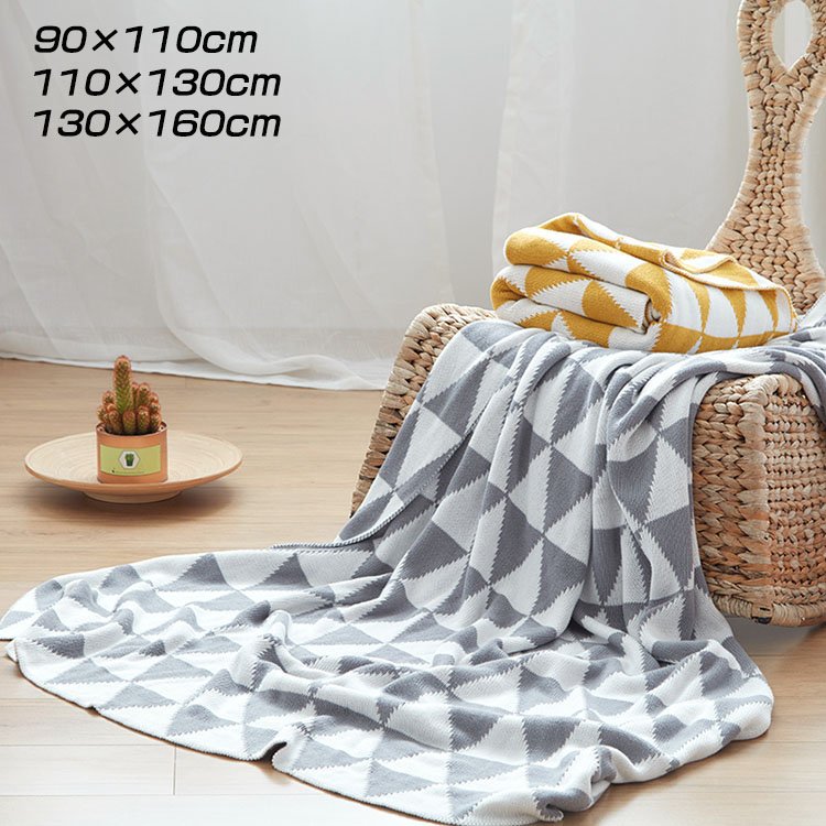 ■ブランケット 北欧 大判 おしゃれ チェック柄 グレー イエロー 膝掛け マルチカバー 寝具 冷感 ブランケット ベッド ソファー 夏 綿 ブラ
