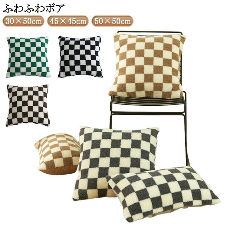 ■もこもこ 30×50cm もこもこ ソファー クッションカバー クッション 北欧 チェック ボア 洗える クッションカバー ベッド まくら おしゃ