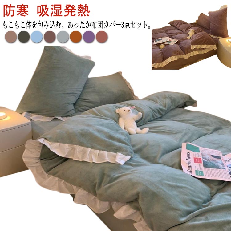 ■あったか 布団カバー 寝具カバー シングル 姫系 防寒 もこもこ フランネル フリル 洗える フランネル 冬用 北欧 掛け布団カバー ベッド