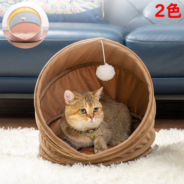 ■猫 ベッド ドーム型 おもちゃ 滑り止め 折りたたみ コンパクト 収納 昼寝 猫用 ねこ ネコ キャット ペット 隠れ家 寝床 北欧 新生活 2色