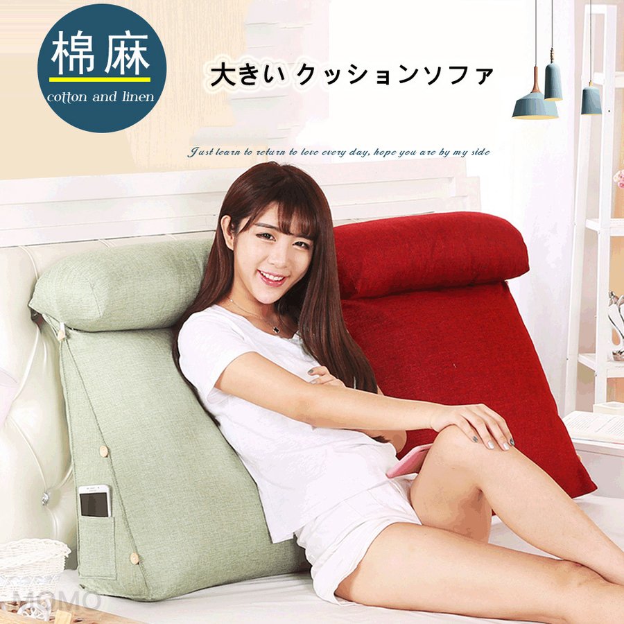 ■綿の麻 三角クッション 背もたれ クッション ベッド 枕 座椅子 大きい クッションソファ 足枕 腰枕 寝れる 枕 北欧 洗える フロア 北欧風