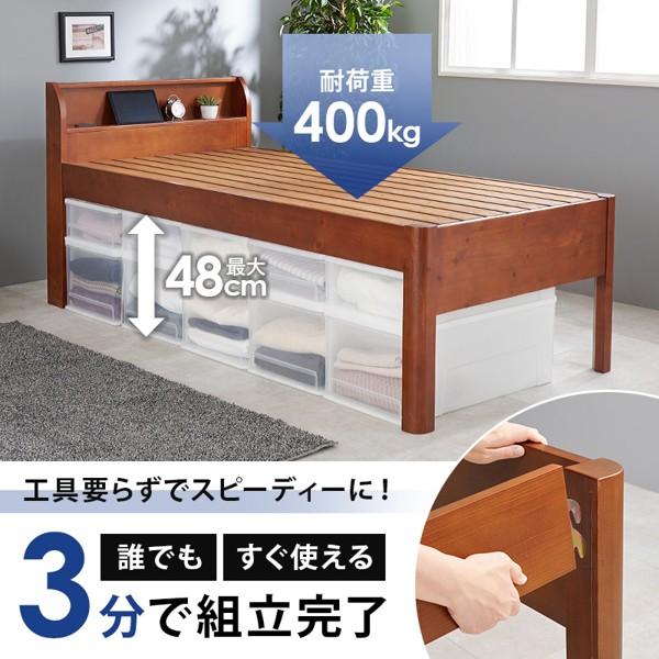 ■ベッド フレームのみ シングル ミドル おしゃれ コンセント付き すのこ 下収納 宮付き 宮棚 棚付き 丈夫 木製 天然木 シンプル 北欧 新生