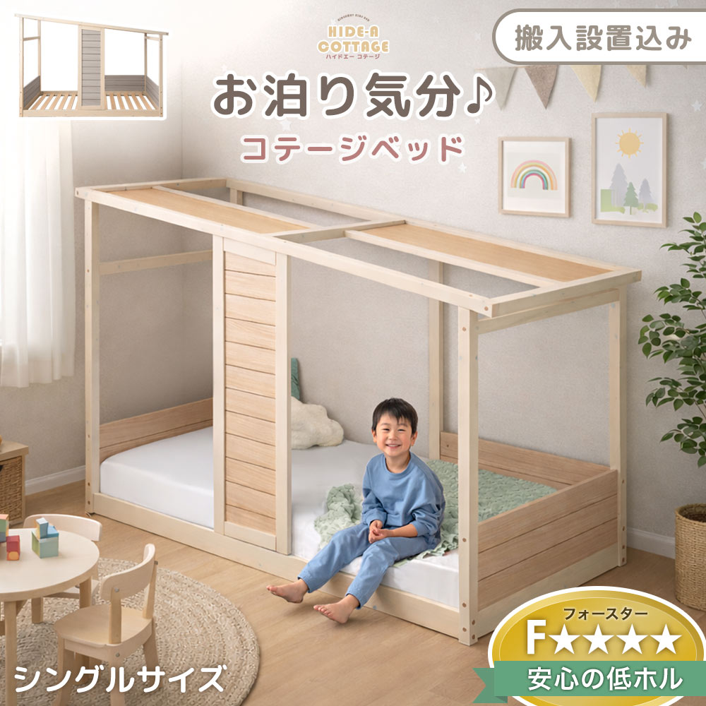 ■【新発売プライス!3/31迄】【搬入設置込み】 コテージ型 キッズベッド 木製 シングル キッズ ベッド システムベッド ロータイプ 子供ベ