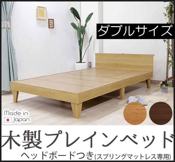 ■木製プレインベッド 棚コンセント付きタイプ ダブル ダブルベッド フレームのみ ベッド ベッドフレーム レッグタイプ